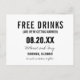 Schwarz-Weiß-freundliche, lustige Hochzeiten speichern die Dattelkarten in einem modernen und einfachen Block- und Skriptdesign, das lautet "Free Drinks (und wir heiraten gerade)". Passen Sie Ihren Namen, Ihre Hochzeitsstandorte und Ihr Datum an.