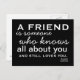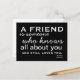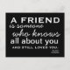 Eine inspirierende Postkarte mit den Worten von Elbert Hubbard "Ein Freund ist jemand, der alles über Sie weiß und immer noch Lieben Sie. Von GotDonna und Donna Gotlib Designs. Gedruckt von den feinen Leuten in Zazzle.