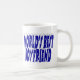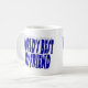 Freund mit blauer Halbtypografie Kaffeetasse