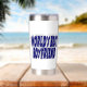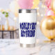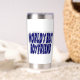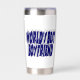 Freund mit dunkelblauer Halbtypografie Thermobecher