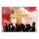 Eine Weihnachtskarte für Ihren Freund und Partner. Eine ganz andere Weihnachtskarte. Die jubelnden Menschenmengen winken sich vor einem goldenen Kreuz. Das Kreuz ist mit Weihnachtsgrüßen und Phrasen in rot eingeschrieben. Im Hintergrund ist ein roter Himmel mit rauschenden Menschenmassen und Sternen. Schick eine religiöse Botschaft zu Weihnachten mit einer Karte, die Glück ausstrahlt.