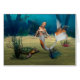 Zwei Freunde, niedliche Meerjungfrau und eine Schildkröte auf blauem Fantasy-Hintergrund