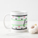 Freunde werden in schwarzem Skript-Zentrum von Tasse geschrieben. Farbenfrohe geometrische Formen mit schwarzen und grünen Streifen, weiche rosa, minzgrün und schwarz polka Punkte. Für die Frühlings- oder Sommersaison ist die Luft ein lustiges Muster. Original Kunstwerk Design © TamiraZDesign. www.zazzle.com/tamirazdesigns