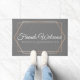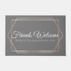Die extravagante und sonnendurchflutete Tür wird sicher jeden sprechen lassen. "Friends Welcome" im modernen Schriftart mit weißer Schrift, darunter ein subtilerer, grauer "Verwandter nur nach Verabredung". Beide sind in einer modernen Rose goldene geometrische Rahmen auf grauem Hintergrund gerahmt.