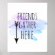 Dieses Poster hat einen skurrilen Stil Text Anführungsfreunde treffen sich hier über lila und blaue Farbstriche Aquarell Design für Wandkunst Dekoration in Zuhause oder Büro. Hintergrund Art Copyright Ann Powell.