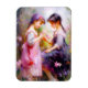 Ein Bild von zwei Freunden, die Blume in einem Garten bewundern. Es wäre ein schönes Kinderzimmer-Dekor.