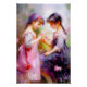 Ein Bild von zwei Freunden, die Blume in einem Garten bewundern. Es wäre ein schönes Kinderzimmer-Dekor.