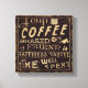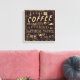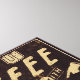 © Pela Studio / Wilder Apple. Ein Vintages Braun- und Goldzeichen mit einem Zitat über Kaffee. Auf dem Schild steht: "Eine Tasse Kaffee, die mit Freunden geteilt wird, ist geschmeckt und Zeit gut verbracht."