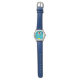 Freundliche Alien sieht Aqua-Blue-Kids zu Armbanduhr