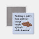 Das lustige Neuigkeiten-Design enthält Text in schwarzem Schriftart, der sagt: Nichts ist besser als ein Freund, außer vielleicht ein Freund mit Schokolade! Neben dem Text ist eine Grafik einer leckeren Schokolade-Bar mit einem Biss aus ihr und Schokoladenkrümeln verlassen dahinter. Dieses tolle Freundschaftsdesign ist perfekt für die besten Freunde der Wahl! Große Weihnachten, Urlaub und Geburtstag Geschenk Idee für Freunde.