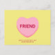 Freundliche rosa Konversation Herz Valentinstag modernen Spaß niedliche personalisierte Postkarte. Vollständig anpassbarer Text. So können Sie die Nachricht sowohl im Herzen als auch im unteren Text personalisieren und einzigartig machen. Oder sie löschen. Rosa Herz auf hellgelbem Hintergrund. Diese Karten sind ideal für Kinder Klassenschule Valentine's Day Freunden feiern.