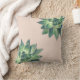 Moderne, freundlich-grüne Sukkulente Pflanze auf hellbeige Kissen.