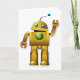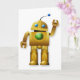 Roboter können so freundlich sein, wie dieses Design beweist. Dieses Design ist ein freundlicher Roboter, der stehend und winkend ist. Der Roboter ist Gold und hat einen grünen Knopf auf seiner Brust und grüne Augen. Dieses freundliche Roboterdesign sieht auf diesen Grußkarten großartig aus