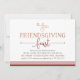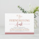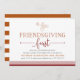 Unser Erntedank-Dinner lädt Sie ein, in den Herbstfarben von Kürbis und Kürbis "Friendsgiving" stilvoll zu feiern. Das Design verfügt über eine Eichel- und Blattsalierung oben mit einer schicken Mischung aus Block- und Skripttypografie und einem gestreiften unteren Rand in kräftigem Granatrot.