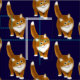Ursprünglicher Entwurf der feinen Kunst eines niedlichen Ingwers oder orange der Tabbykatze gegen einen blauen Mitternachtshintergrund durch Tierkünstler und Designer Carolyn McFann zwei des schnurrenden Katzen-Studios druckte auf hochwertigem Baumwollgewebe für Kittyfans.