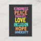 Güte, Frieden, Gleichheit, Liebe, Inklusion, Hoffnung, Diversity, positive Botschaft, Einheitsdesign, Inklusionskunst, Gleichheit für alle, Liebe und Hoffnung, vielfältige Welt, inspirierendes Design, Freundlichkeit, Frieden und Harmonie, soziale Botschaft, positive Lebensräume, hoffnungsvolle Zukunft.