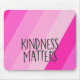 Inspiration Zitat, Kindness Matters, mit geometrischen diagonalen Streifen in Rosatönen.