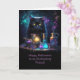 Schwarze Katze mit magischer Tränke Happy Halloween Karte für einen Freund! Hübsche Farben und ein mystisches Gefühl