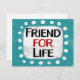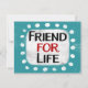 "Friend For Life" ist ein niedliches inspirierendes oder motivierend Zitat mit einer weißen Akzent-Form, umgeben von weißen, texturierten, whimsikalen Punkten.