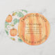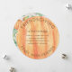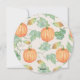 Die rustikale Erntedank-Dinner-Einladung in einzigartiger runder Form mit einem Kürbiskulisse-Hintergrund, "Friendsgiving"-Schriftzeichen oben und "Fest mit Freunden" am Ende mit Ihren personalisierten Dinner-Details in der Mitte. Die Rückseite ist ein rustikales Kürbispflaster, Reben und herbstliche Blätter Muster.