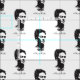 This artistic fabric design features a captivating repeating pattern of the iconic artist Frida Kahlo in a striking monochromatic style. Each motif showcases a stylized portrait of Frida, rendered in dark tones against a clean, light background, creating a bold and minimalist aesthetic. Her authentic signature is elegantly integrated into each repetition. This design offers a sophisticated and artistic tribute to her enduring legacy, perfect for those who appreciate classic art with a contemporary feel. © 2025 Frida Kahlo Corporation. All Rights Reserved.