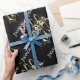 Frieden! Golden Angels Wrapping Paper zeigt zeitgenössische goldene Engel auf schwarzem Hintergrund. Eine einzigartige Verpackung für Ihre Urlaubsgeschenke.