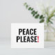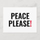 Frieden bitte Schwarz-weiße und rote Text minimalistisch modernen mutigen Anti-Krieg Protest Postcard.