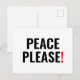 Frieden bitte weißer schwarzer Text gegen Krieg Pr Postkarte