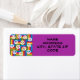 These return address labels have a design of squares made of rechtgheckes in bright 1970s colors with peace signs scatter around it.