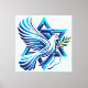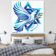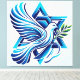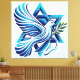 Dieses atemberaubende Stück besticht durch eine anmutige Taube in der Mitte des Fluges, seine ausgestreckten Flügel und einen lebhaften grünen Olivenzweig, der in zarter Weise die Hoffnung symbolisiert. Die Taube, in sanften weißen Tönen gerendert, kontrastiert wunderschön vor dem Hintergrund eines kühnen, soliden blauen Sterns von David, der das Auge und das Herz mit seiner Tiefe und Bedeutung erobert.
