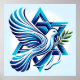 Dieses atemberaubende Stück besticht durch eine anmutige Taube in der Mitte des Fluges, seine ausgestreckten Flügel und einen lebhaften grünen Olivenzweig, der in zarter Weise die Hoffnung symbolisiert. Die Taube, in sanften weißen Tönen gerendert, kontrastiert wunderschön vor dem Hintergrund eines kühnen, soliden blauen Sterns von David, der das Auge und das Herz mit seiner Tiefe und Bedeutung erobert.