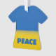 Frieden auf der einen Seite und das Jahr auf der anderen Seite auf einem blauen und gelben Weihnachtsschmuck, um Unterstützung für den Frieden in der Ukraine zu zeigen.