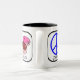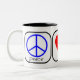 Frieden, Liebe und Donuts Zweifarbige Tasse