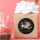 Dieser elegante schwarze runde Aufkleber mit der Aufschrift "Frieden, Liebe & Freude" zeigt ein modernes, minimales Aquarell-Winterbouquet auf schwarzem Hintergrund.