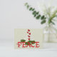 Rote Herzen steigen vom weißen Lotos mit grünem Blätter und dem Wort "Frieden" in den roten Buchstaben.