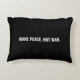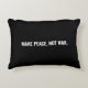 Machen Sie Frieden nicht Krieg schwarzen und weißen Text minimalistischen Accent Kissen. Vollständig anpassbarer weißer Text auf beiden Seiten des Kopfkissens auf schwarz festem Hintergrund. Alle Farben können bearbeitet werden.
