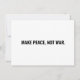 Machen Sie Frieden nicht Krieg Schwarz-Weiß-Text minimalistisch einfachen kühnen Anti-Krieg Protest Grußkarte. Es kann auch eine großartige Entschuldigung / sorry Karte. Vollständig anpassbarer schwarzer Text auf weißem Hintergrund.