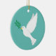 Schöne Weihnachtsbotschaft schmücken Frieden mit Ihnen. Auf der anderen Seite des Ornaments befindet sich eine weiße Taube mit einem Olivenzweig.