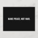 Machen Sie Frieden nicht Krieg Schwarz-Weiß-Text minimalistisch einfachen kühnen Anti-Krieg Protest Postcard. Vollständig anpassbarer weißer Text auf schwarzem Hintergrund. Nahost/Gaza-Konflikt