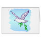 Eine Taube des Friedens fliegt über einen blauen Himmel, der eine Mitteilung des Friedens und der Harmonie halten einen grünen Ölzweig trägt. Klicken fertigt sie zum AuswahlSchriftart besonders an, addiert Hintergrundfarbe, addiert Ihren Namen oder Mitteilung und mehr.