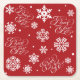 Ruhe und Freude Text Illustration mit weißen Schneeflocken Dekoration auf rotem Hintergrund