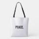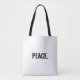 Frieden schwarz-weiß Text minimalistisch Anti-Krieg schlicht moderne elegante Tote Bag. Benutzerdefinierter schwarzer Text auf weißem Hintergrund.