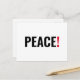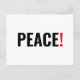 Friedensausrufezeichen Schwarz-weiß und rot minimalistisch modernen mutigen Typografie gegen Krieg Protest Postcard.