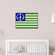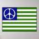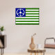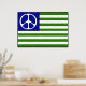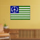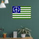 Die blaue, weiße und grüne Flagge mit einem Friedenssymbol anstelle der Sterne sagt uns, dass der Frieden Teil des rettend Planeten sein muss, weil der Krieg eine zerstörerische Kraft ist, die uns und den Planeten betrifft. Verbreitet die Botschaft, dass ein Ende des Krieges die Erde rette.