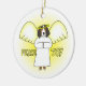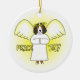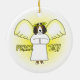 Eine Engel Treeing WandererCoonhoundverzierung, vervollkommnen für Ihren Weihnachtsbaum. Der Cartoonhund hat große flaumige Flügel und einen gelben Halo, und auf beiden Seiten geschrieben von ihm ist "Frieden" und "Freude." Schöne Hundeverzierung für Haustierliebhaber.