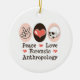 Ein Friedenssymbol, -herz und -schädel im rosa und dunklen Braun mit der Wörter FriedensLiebe-gerichtlichen Anthropologie unter sie auf gerichtlichen Anthropologen-T - Shirts, T-Shirts, Kleid, Kleidung und mehr Einzelteilen, die ein niedliches Geschenk für einen gerichtlichen Anthropologieprofessor, -forscher, -major oder -absolventen machen. Klicken Sie an die folgende Verbindung, um die ganze unseren Chrissy H. zu sehen.