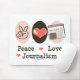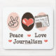 Ein Friedenssymbol, -herz und -zeitung entwerfen im rosa und dunklen Braun auf den Journalismus-T - Shirts, T-Shirts, Aufkleber und mehr Geschenke, die für einen Sendungs- oder Druckjournalismusstudenten perfekt sind, Major oder Absolvent oder Zukunftjournalist, Reporter, Herausgeber, Nachrichtensprecher oder Verfasser. Klicken Sie an die folgende Verbindung, um die ganze unseren Chrissy H. zu sehen.