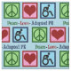 FriedensLiebe passte P.E. Lehrergeschenk mit einem Friedenszeichen, Herzen und einer Person, die Sport in einem Rollstuhl tut an. Angepasste körperliche Bildung ist eine große Karriere für einen PET-Lehrer. Ein A.P.E. Lehrergeschenk.