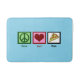 Eine Pizzascheibe nahe bei einem Friedenszeichen und einem Herzen. Liebe I Italienernahrung.