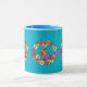 Ein Blumenschild in Rosa, Gelb, Orange, lila, Grün, Weiß und Schwarz.